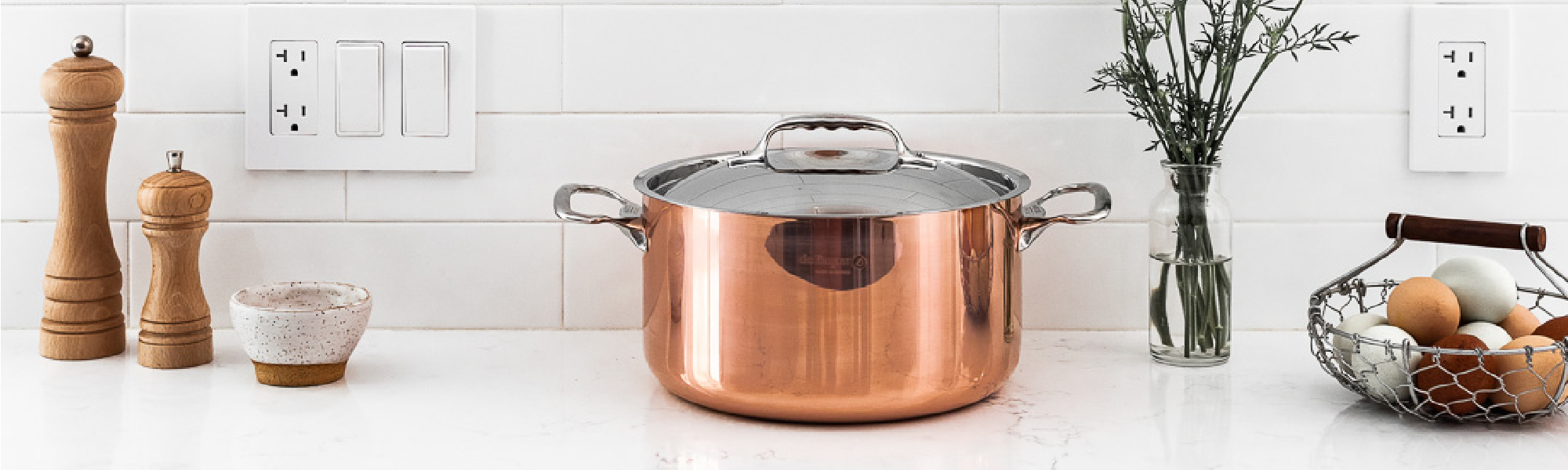 de Buyer 銅系列鍋具,鍋身厚度由90%銅、內層10%厚度不鏽鋼製成。方便內層與食物接處方便清潔,以最高規格銅厚度製造不同規格鍋具,以發揮銅最優秀的傳導熱性能。