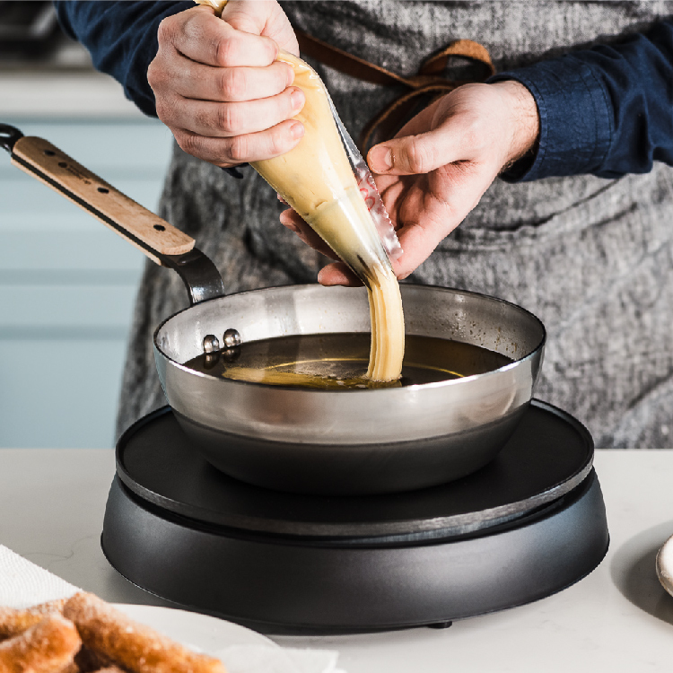 在電磁爐上烹飪時確實經常會遇到此問題。為避免這種情況並獲得均勻的烹飪效果,建議您不要以最大加熱功率加熱。並配搭適中感應爐烹飪區域相對於鍋的尺寸太小(請參閱電磁爐用戶指南中的尺寸指南)。
