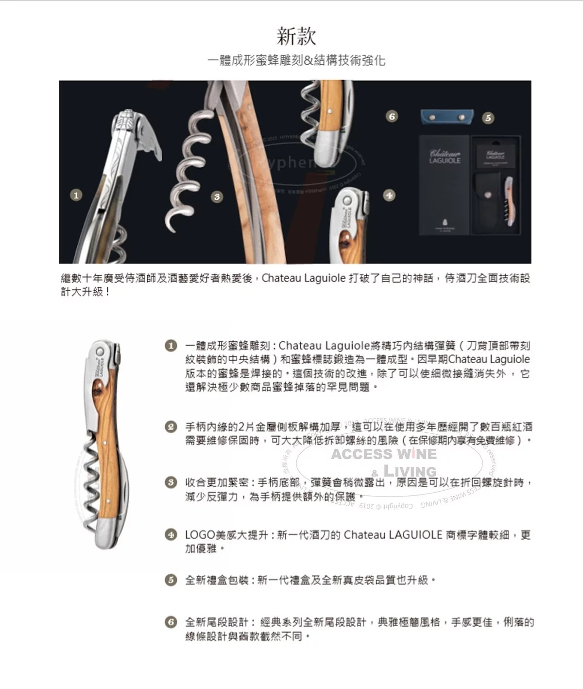 位在阿維隆省的拉吉爾或蒂耶爾(Thiers),不僅是Chateau Laguiole的產地,也是幾世紀以來歐洲手工刀具的重鎮。Chateau Laguiole侍酒刀大受歡迎之後,在這同等級的的刀匠也開始製作出極富質感與特色的侍酒刀,在當地刀具產業興起了一股良性競爭。然而,卻有些不肖業者在全球各地,以拙劣的技術仿造Chateau Laguiole侍酒刀,侵犯Chateau Laguiole的專利、商標和版權。千萬別被價格低廉的仿冒品給蒙騙,敬請安心在ACCESS WINE & LIVING選購Chateau Laguiole正版侍酒刀,其母公司頤爾東西國際有限公司為Chateau Laguiole在大中華地區官方指定代理商,並提供侍酒刀原廠終身保固服務。