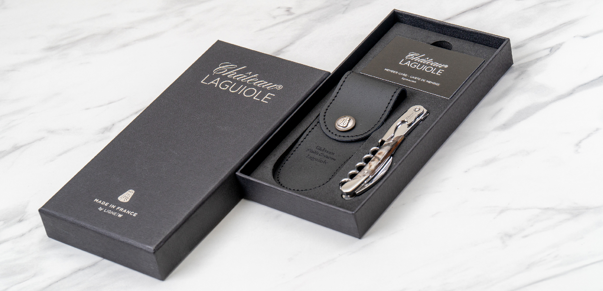 誕生於法國的Chateau LAGUIOLE ,為Guy Vialis先生於1992年所創立。身為專業侍酒師與刀匠的他,是第一位研發出以刀具聞名的拉吉爾(Laguiole)傳統刀工藝結合開瓶功能的專業侍酒刀,包含了著名的蜜蜂雕刻、精細的藝術拋光處理、使用珍稀木材及天然牛角的握柄。